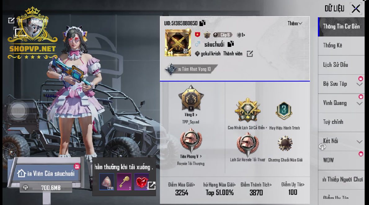 ACC PUBG MOBILE MÃ SỐ 55289